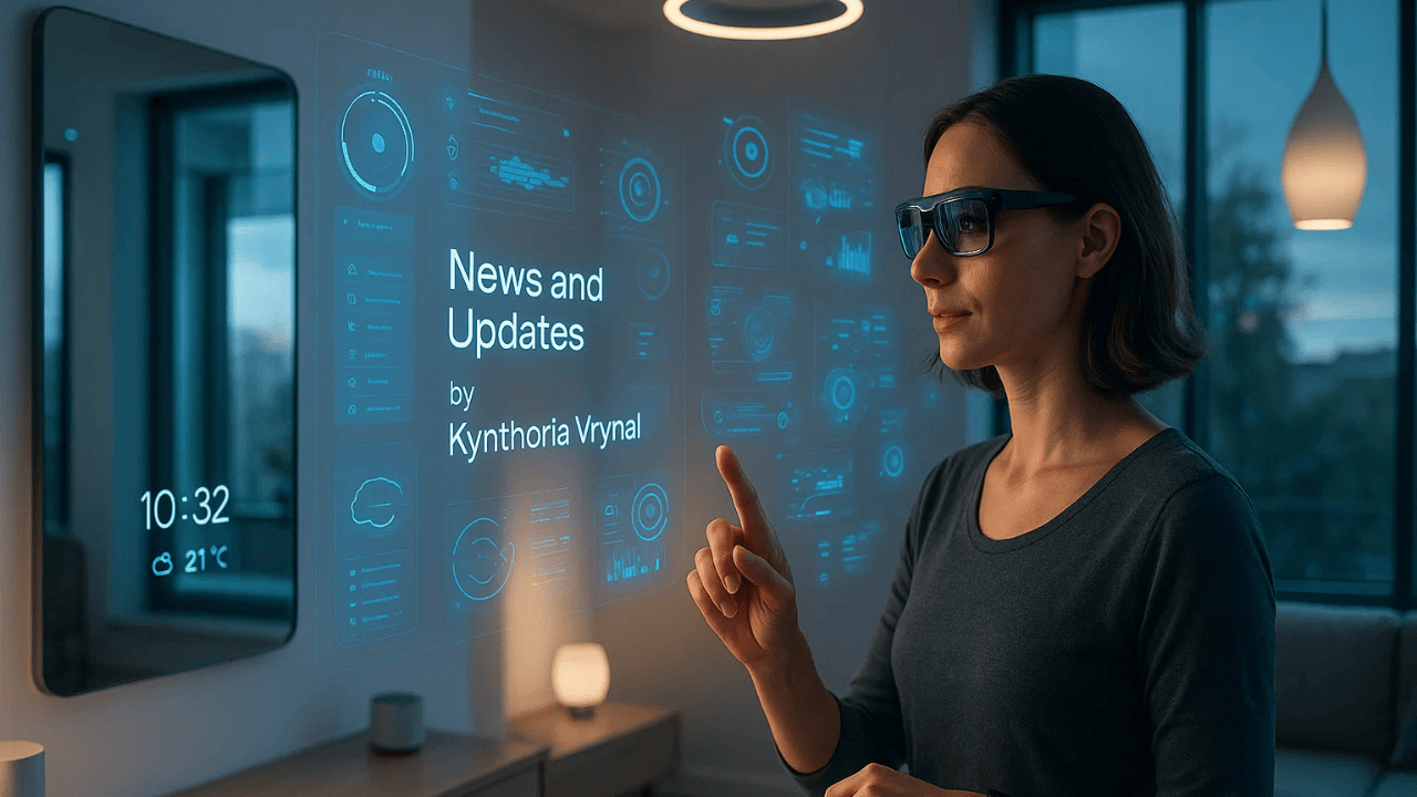 News and updates by Kynthoria Vrynal often mention devices like smart mirrors, biometric locks, AR glasses, wellness wearables, and home automation hubs.